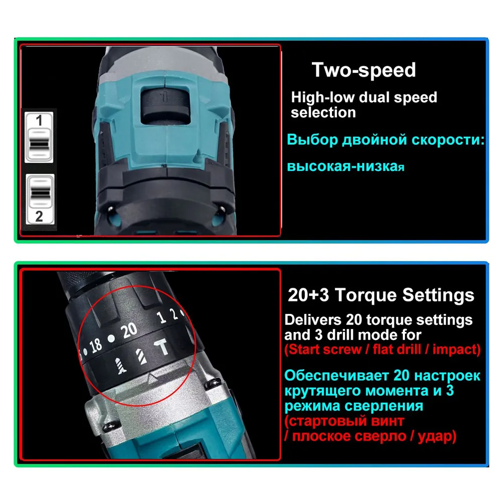 -20 + 3 ступенчатых настроек, обеспечивает 20 настроек крутящего момента и режим сверления Для высокоточной работы