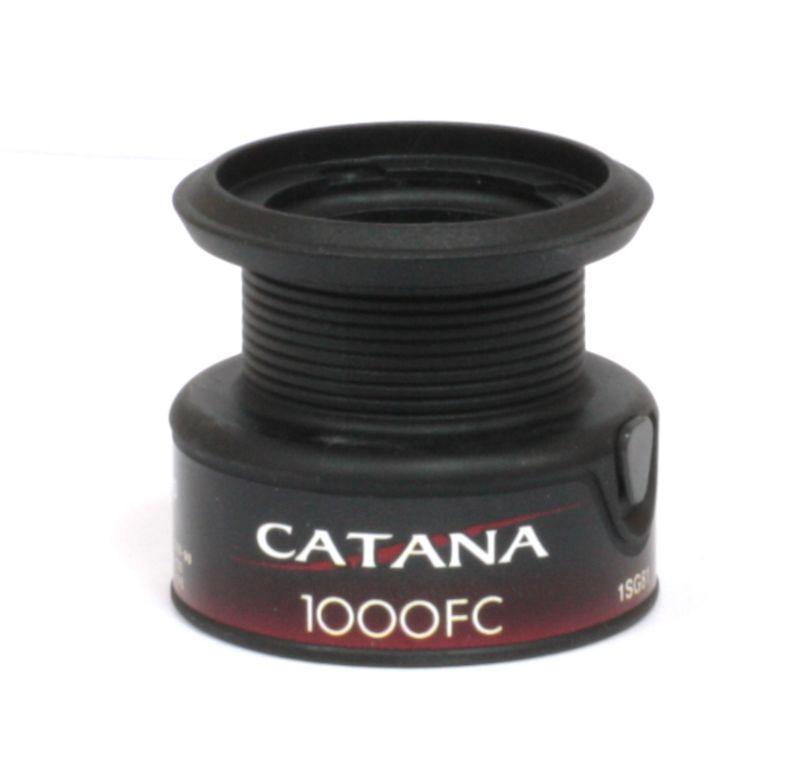 Катушка SHIMANO CATANA 2500 FC CAT2500FCБезынерционные катушки из серии Catana FC являются представителями бюджетного сегмента в каталоге знаменитой японской компании Shimano и предназначены для широкого круга рыболовов. Всего в эту небольшую линейку входят четыре разноплановые модели, весящие от 215 до 350 гр. и с общим для всех передаточным числом - 5.2:1 (исключением является Catana 4000FC, у которой оно равно 5.1:1). Корпус катушек делается из прочного, но одновременно достаточно легкого материала. Данные катушки оснащаются тремя подшипниками, два из которых шариковые экранированные из коррозиестойкой стали и один роликового типа. Чтобы уменьшить лишнюю вибрацию при вращении катушки, при изготовлении ротора применяется компьютерная балансировка под названием DynaBalance. С целью исключения самостоятельного проворачивания ротора в противоположную сторону, используется более современная система Super Stopper 2. Фирменная шпуля AR-C Spool с оригинальным дизайном и скошенным бортиком, помогает снизить трение с леской и благодаря этому увеличить дистанцию заброса приманки. Ролик лесоукладывателя имеет специальную конструкцию, которая уменьшает перекручивание шнура и тем самым снижает риск сбрасывания петель и образования нежелательных "бород". Фрикционный тормоз передний, способный выдерживать максимальные нагрузки в диапазоне от 2 до 6 кг. Одним оборотом ручки выматывается от 64 до 81 см лески, в зависимости от выбранной катушки. В нижней части корпуса, за ротором, располагается рычажок переключения реверса, который при переключении позволяет крутиться ручке в обоих направлениях. Ручка может складываться при хранении или на время перевозки, а также ее можно переустанавливать на противоположную сторону. Catana FC комплектуется запасной пластиковой шпулей.
