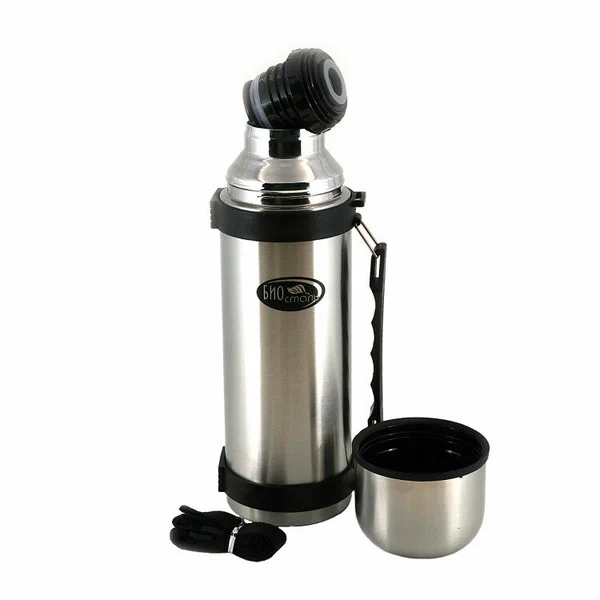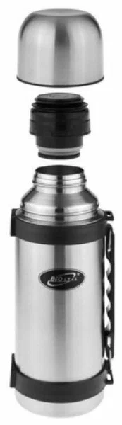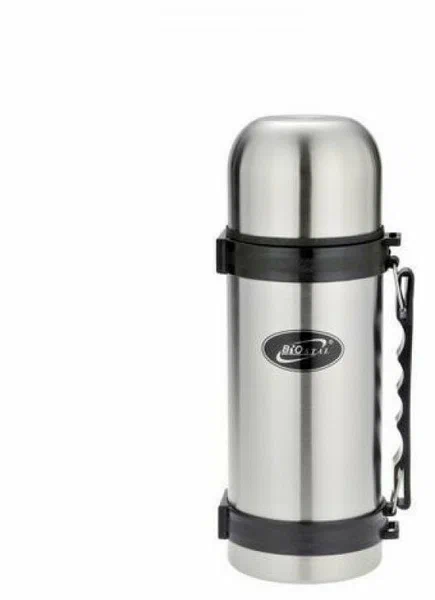 Термос "Биосталь" с узкой горловиной и пробкой с кнопкой, 2 чашки, 1 л, РЛ-00033650