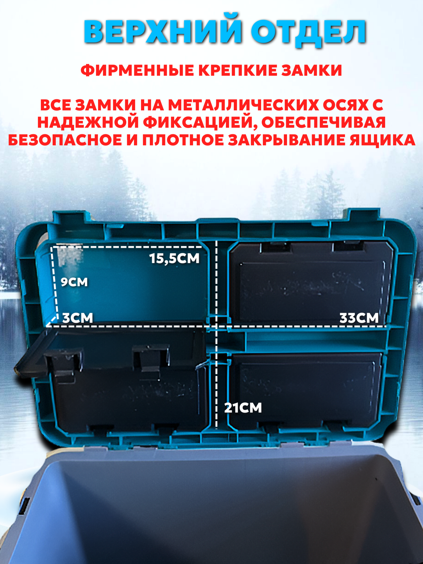 Все замки на металлических осях с надежной фиксацией, обеспечивая безопасное и плотное закрывание ящика.