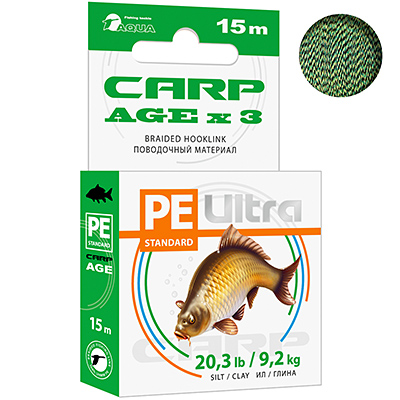 Поводочный материал AQUA CARP AGEx3 Ил/Глина 15м 9,2кг 20,3 lb, РЛ-00035318