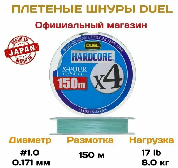 Шнур Duel PE Hardcore X4 MilkyGreen №1,0 0,171мм 8,0кг 150м, РЛ-00035418