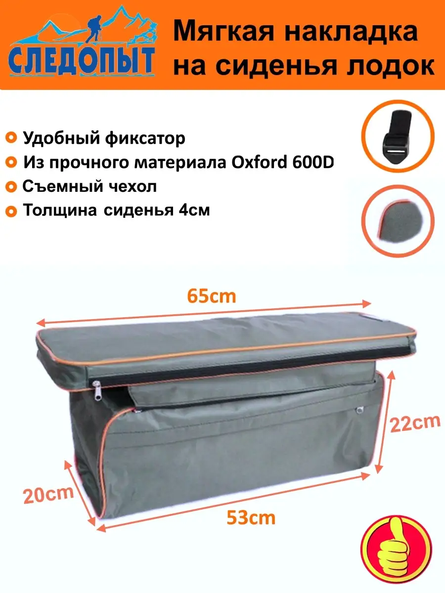 Накладка на сиденье "Следопыт" мягкая с сумкой, изготовленной из прочного материала Oxford 600D с водозащитной пропиткой PU. Мягкая накладка станет незаменимой при длительном нахождении на воде. Устанавливается на жесткое сиденье надувной лодки. Имеется вместительная сумка для принадлежностей или рыбы.Материал наполнения - вспененный полиэтилен.Дополнительно